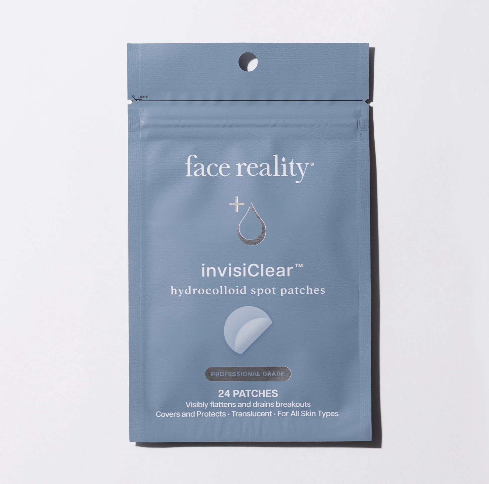 Introducing invisiClear™ hydrocolloid spot patches designed to support the skin clearing journey. Our professional- grade patches act as a transparent aid that drains, absorbs and flattens pustules and papules. InvisiClear™ prevents picking and protects skin from external aggressors and debris. We are here to get you through the rough patches.